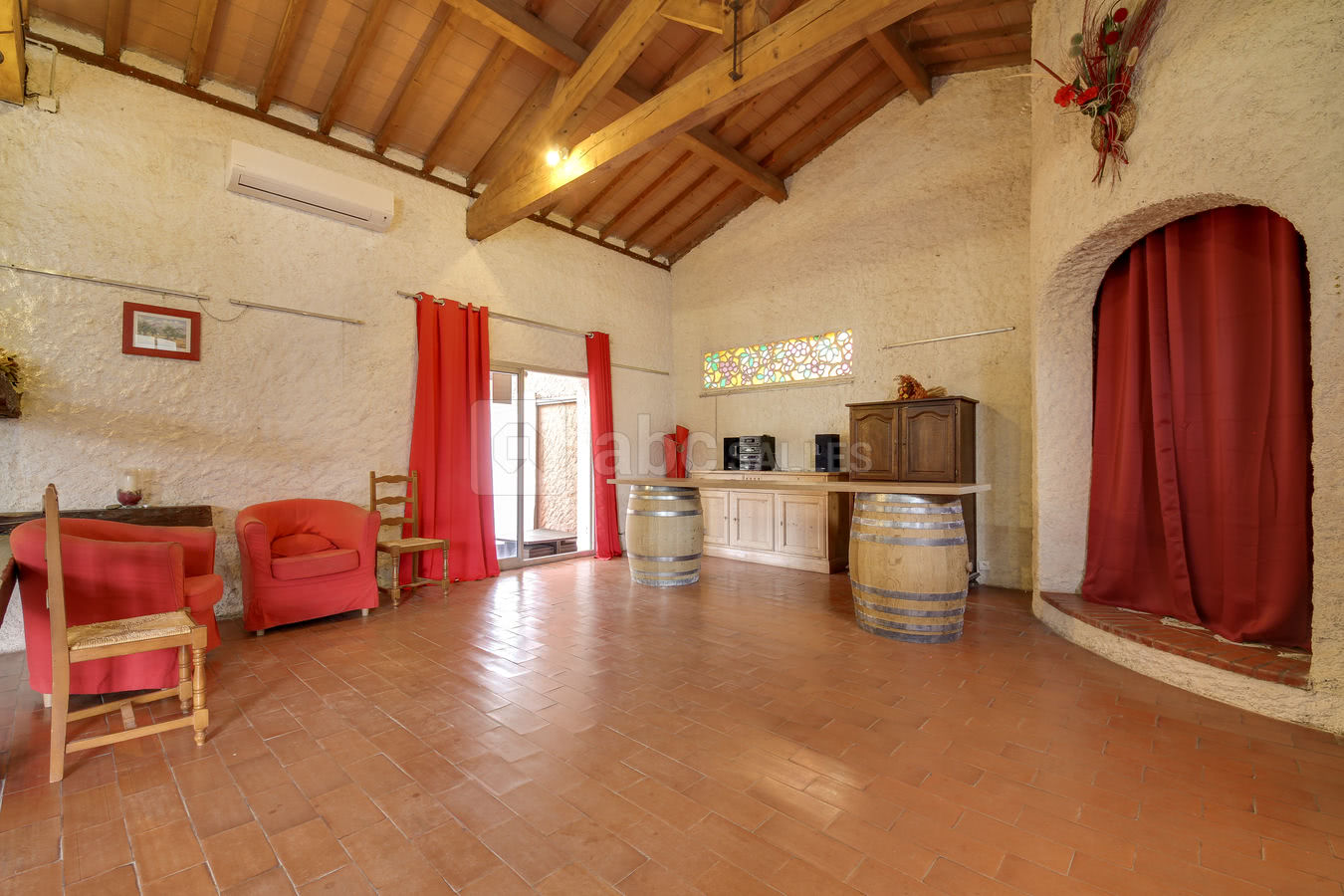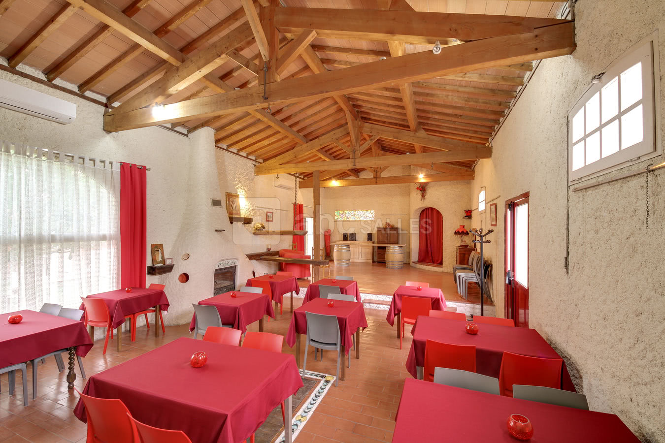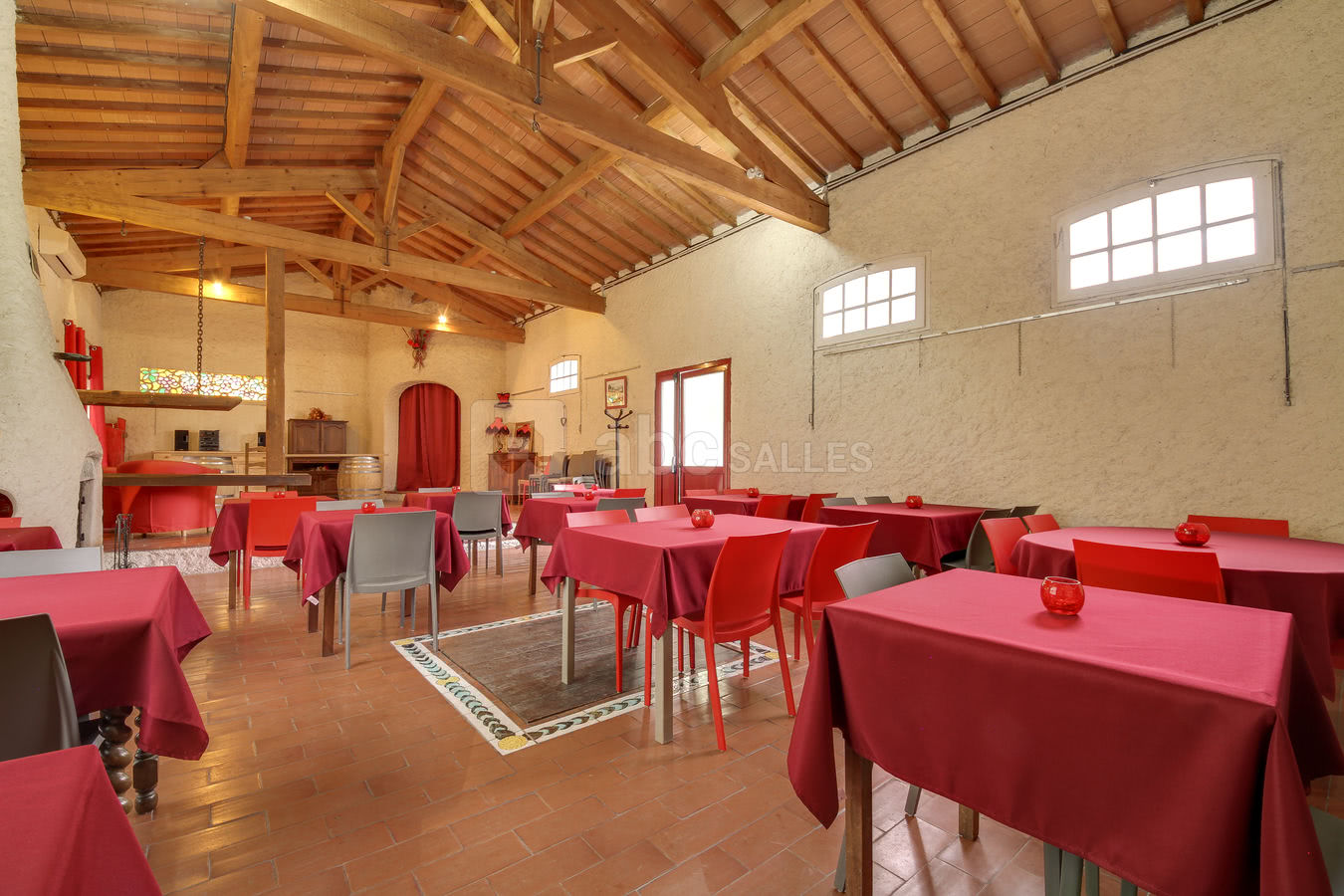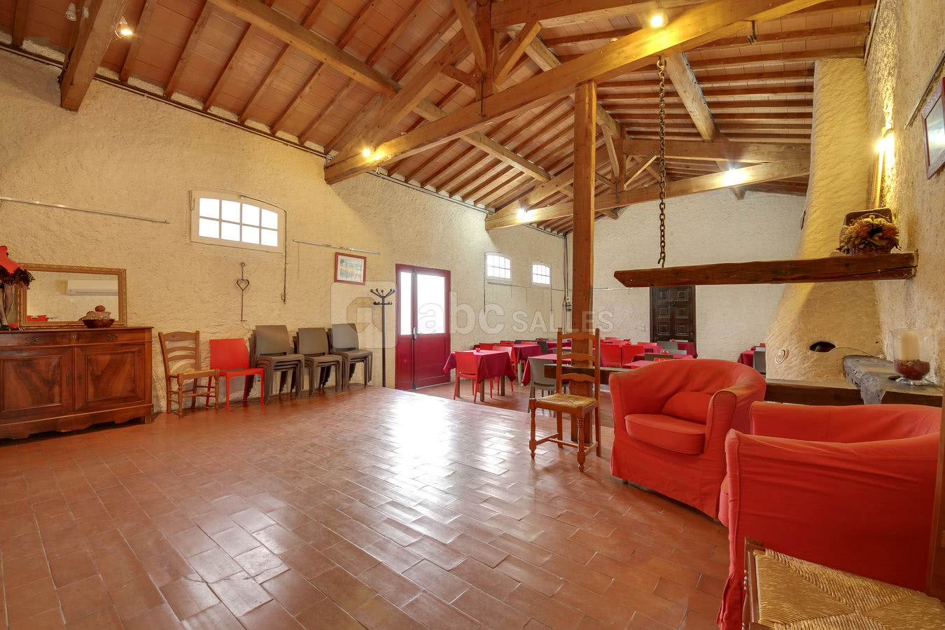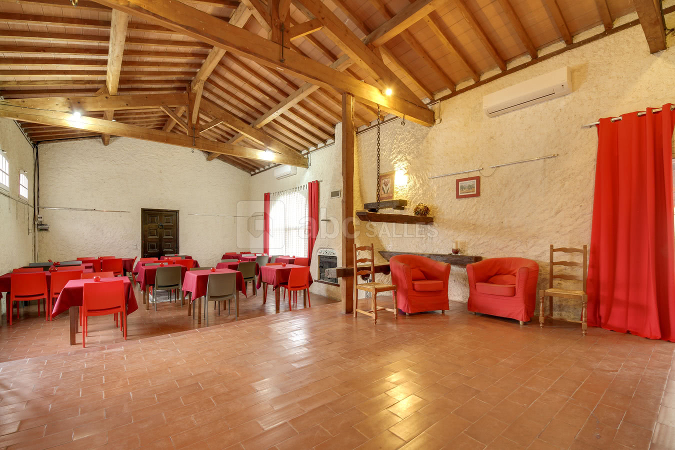 Une magnifique salle de caractère donne sur un patio style andalou et une terrasse abritée de 40 m² idéale pour vos cocktails d’accueil.