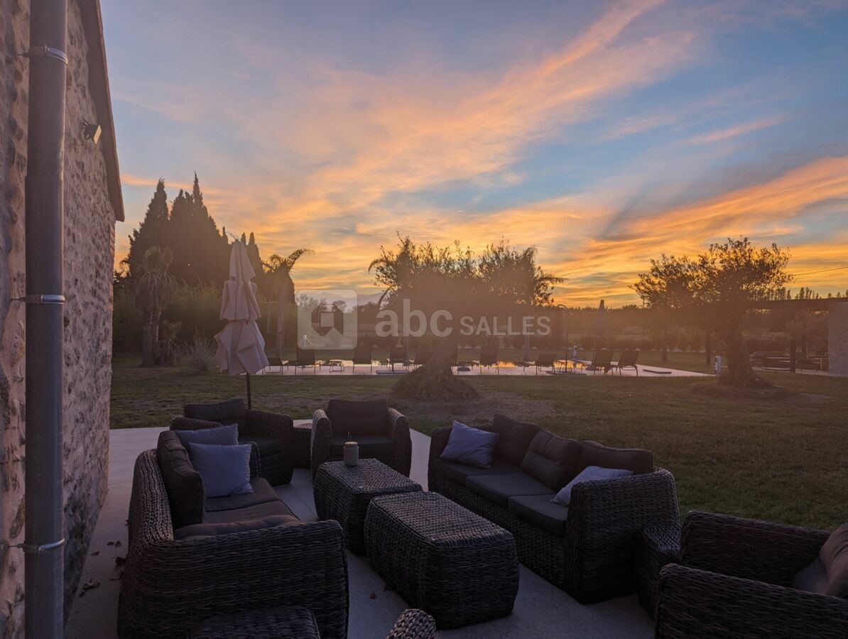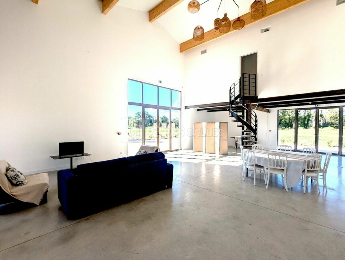 Inclus : parking, électricité, chaises Napoléon blanche, tables rondes 8/10 personnes, 4 buffets, espace extérieur bordé d'un jardin méditerranéen de 450 m², avec mobiliers (canapés, fauteuils, tables, mange-debout, bar...), espace traiteur intérieur, 4 chambres doubles (1 en rez-de- chaussée et 3 à l'étage), draps et serviettes inclus. 2 salles de bain et 2 wc dont un aux normes PMR, un spa.
