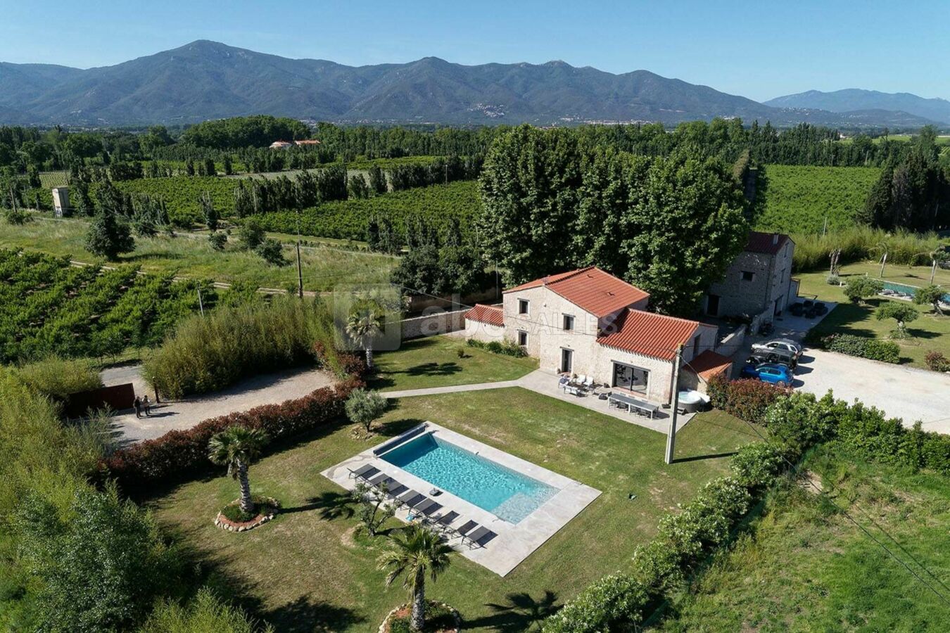 Ce grand gite de charme bénéficie d’un jardin, de sa propre piscine et d’un jacuzzi, d’une grande terrasse avec mobilier pour déjeuner ou dîner à l’abri des regards et contempler la vue sur le massif des Albères et la Tour de la Massane.
