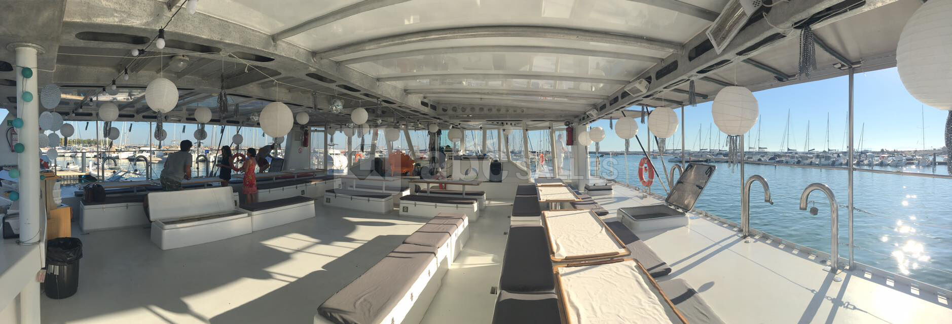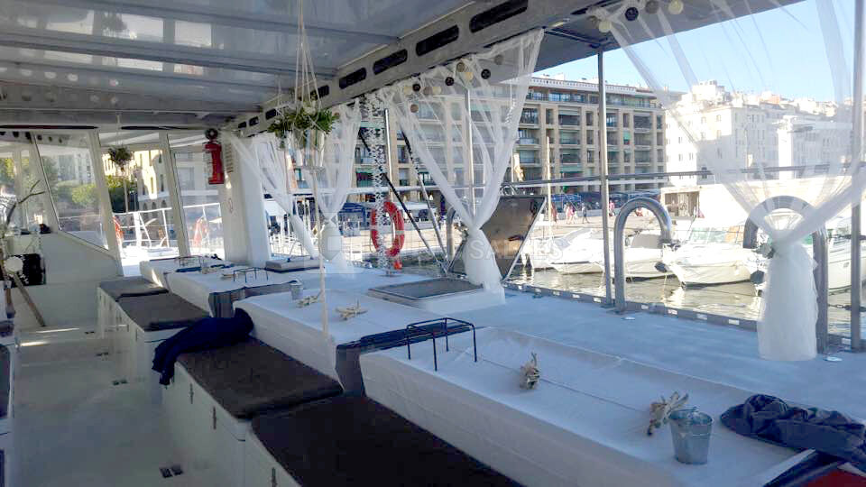 De part sa mobilité nous vous proposons plusieurs activités réalisables à bord comme: du padle, de la pêche, des visites culturelles, de la voile, des dégustations de produits mais aussi des spectacles ou encore une discothèque.