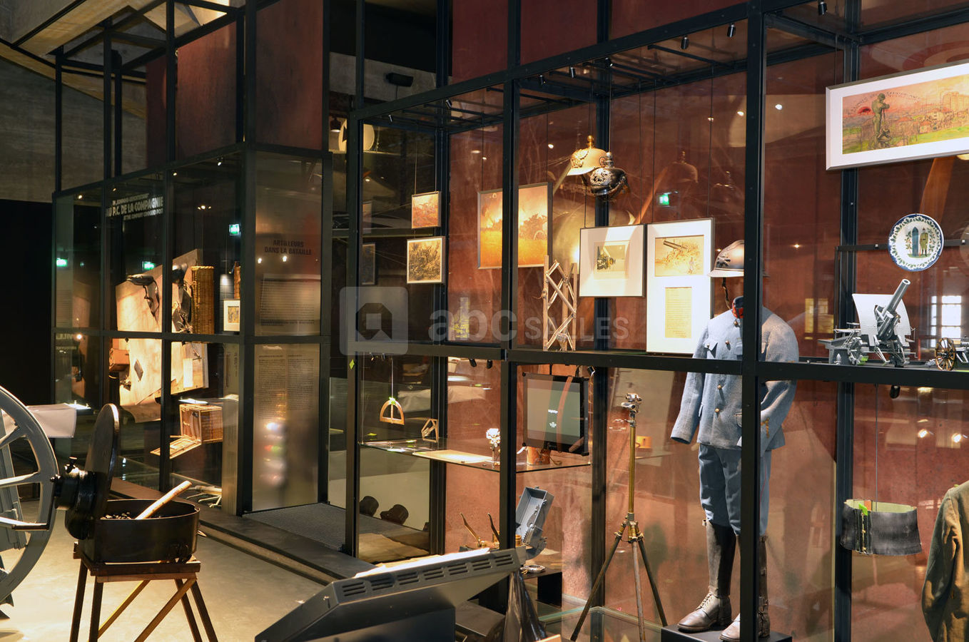 Profitez de l'aménagement de notre étage de plus de 600m² : espace interactif, salle d'expositions de 175m², centre de documentation, salle pédagogique, espace de détente mais également terrasses avec vue sur les anciens champs de bataille ! Notre mémorial a mis en place la création de deux ailes de 345m² chacune qui permettent d'encadrer le lieu et d'accueillir les camions, canons et roulante allemande de l'exposition permanente !