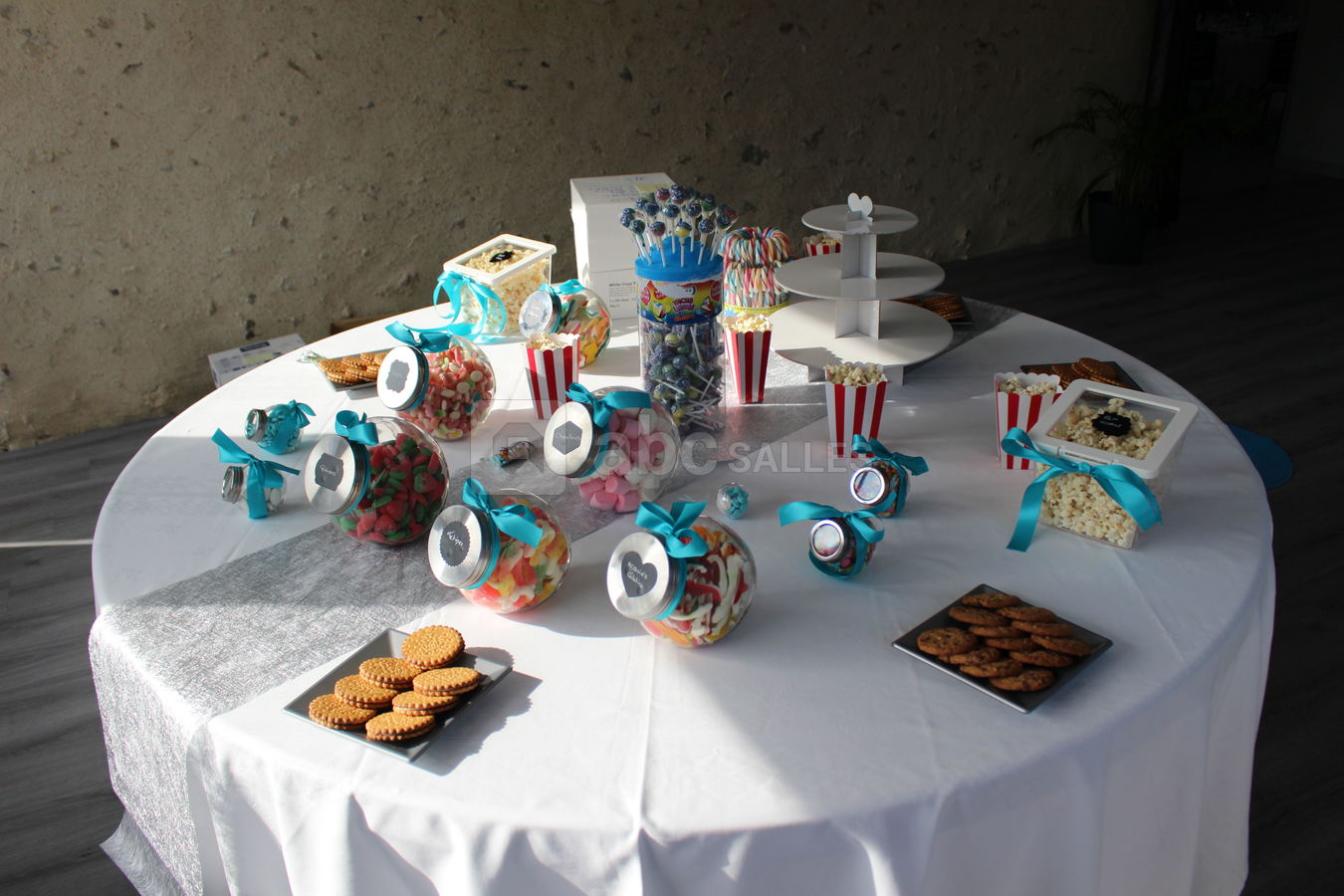 25 tables rondes de 8 personnes, 10 tables rectangulaires, 1 table ovale et 280 chaises.