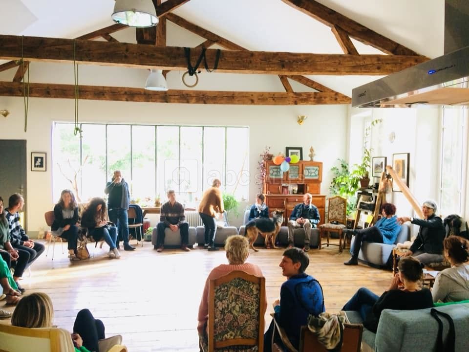 Depuis des siècles, à la Mayre se tissent des bouts de soi(e), des fils de soi(e); des moments de paix, de recueillement, de joie et de repos. Enveloppé d’un vert frais et sécurisant, le Moulinage vous invite à un séjour inoubliable. En famille, entre amis, pour votre projet professionnel, en stage, séminaire, conférence, formation ou retraite; simplement pour un cours de Yoga ou un moment bien mérité avec vous même, Le Moulinage de la Mayre vous accueille avec ses différents coins de rêve. Avec une grande capacité d'hébergement (15+ personnes) et dans un cadre de verdure et calme, vous pouvez louer le lieu dans sa totalité, une chambre, un des appartements ou la salle.