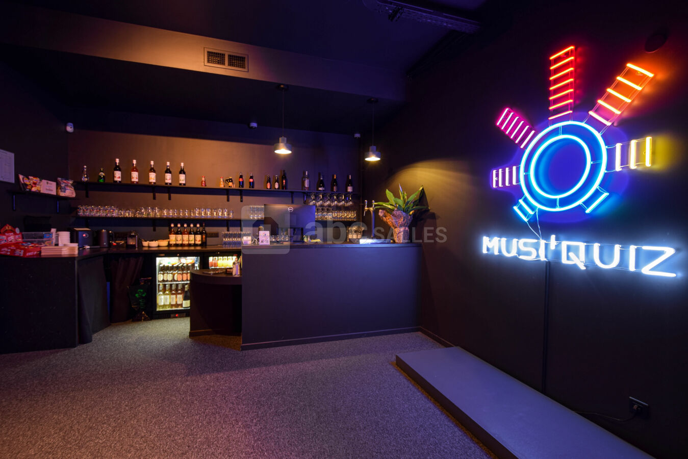 Nous disposons de deux plateaux Musi'Quiz, une salle de réunion, un bar, un karaoké et des options de privatisation avec traiteur pour vos événements jusqu'à 70 pers.