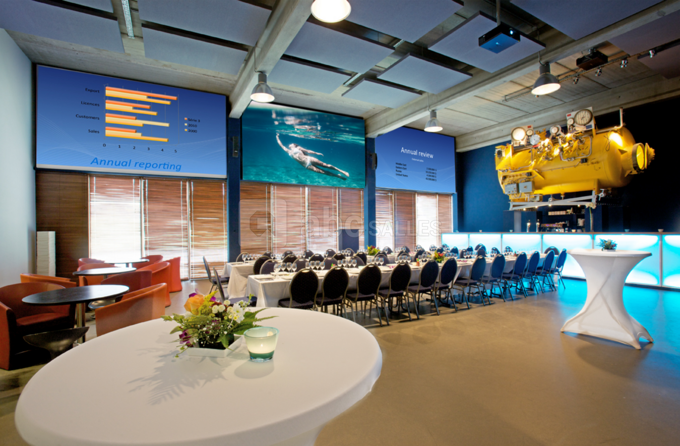 Vous y trouverez tout pour plonger, duiken en scuba dive ! Nous mettons également à votre disposition plusieurs espaces de réception (jusqu'à 250 personnes) pour vos événements : séminaire, workshop, présentation de produits, anniversaire, team building, incentive, conférence de presse, cocktail, walking dinner, baptêmes de plongée en groupe...