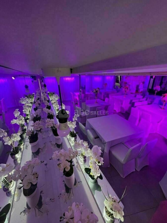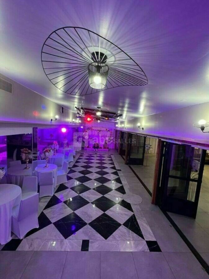 La salle principale, d’une superficie de 230 m², peut accueillir jusqu’à 400 personnes en format soirée et 150 personnes assises en format réception. En plus de cet espace intérieur, vous pourrez profiter d’un espace vert idéal pour des moments de détente en plein air. De plus, un parking privé de 80 places est mis à disposition pour assurer un accueil optimal de vos invités.