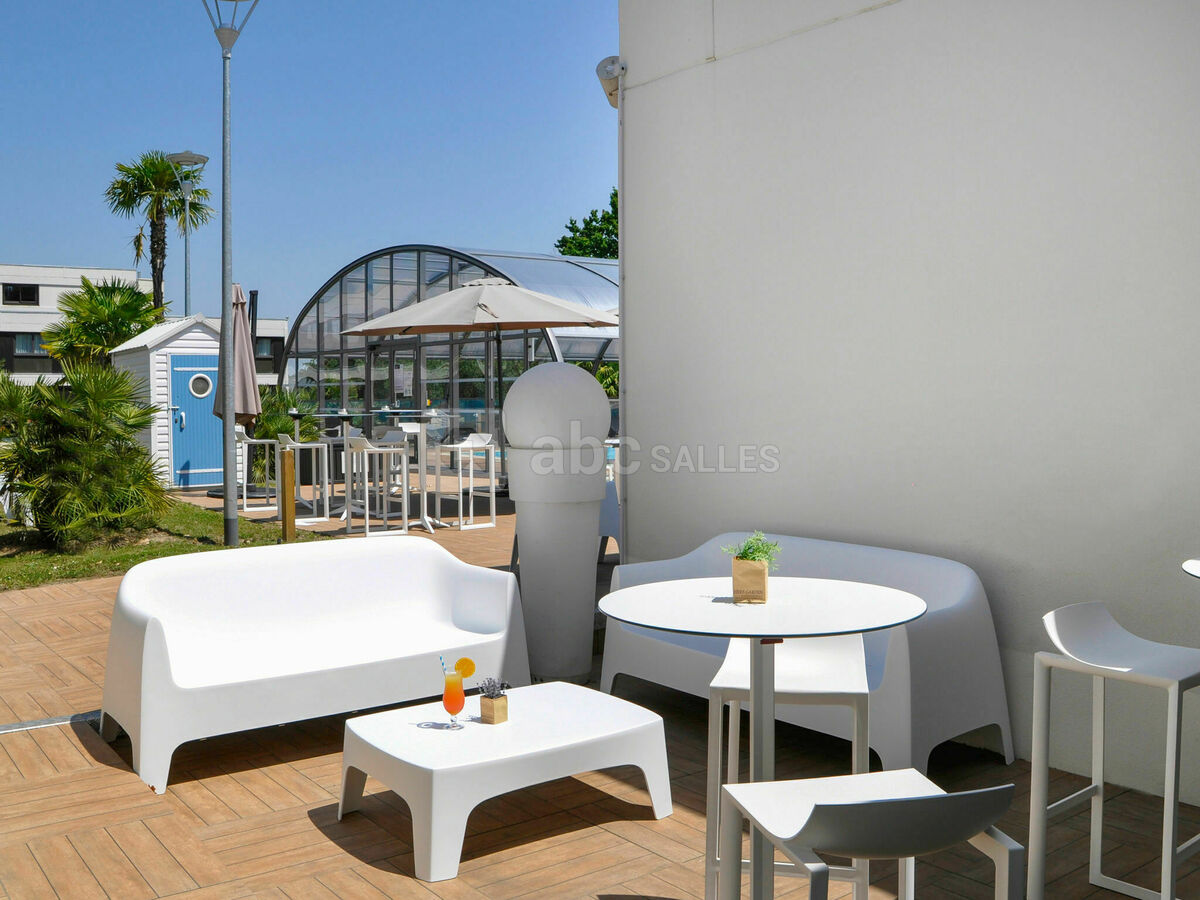 Situé dans un parc arboré, notre hôtel à Carquefou compte en effet des terrains de pétanque et badminton, des tables de ping-pong et une piscine couverte chauffée à 30°C pour se baigner toute l'année. Vous pourrez aussi profiter de la cuisine traditionnelle de notre restaurant avec terrasse et organiser vos événements professionnels dans nos 15 salles de réunion avec espace Meeting.