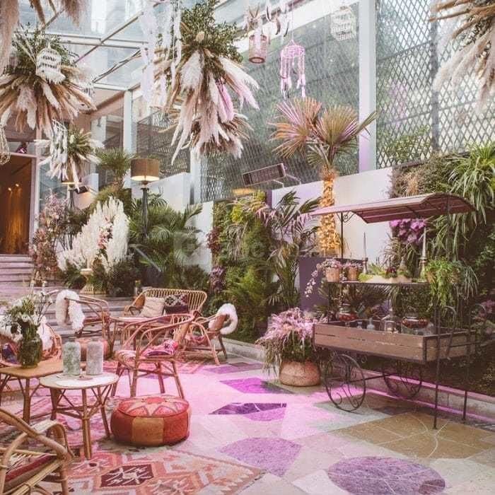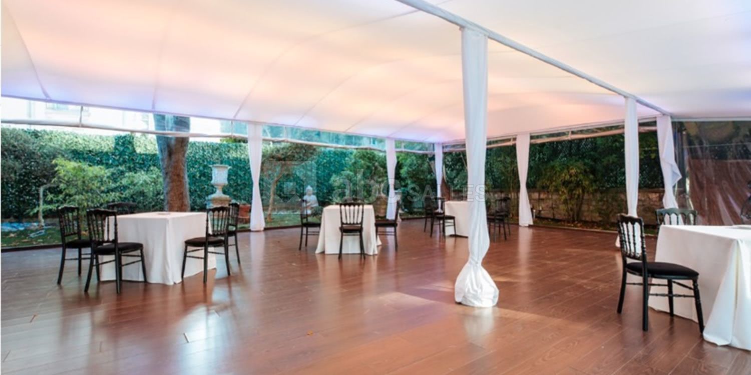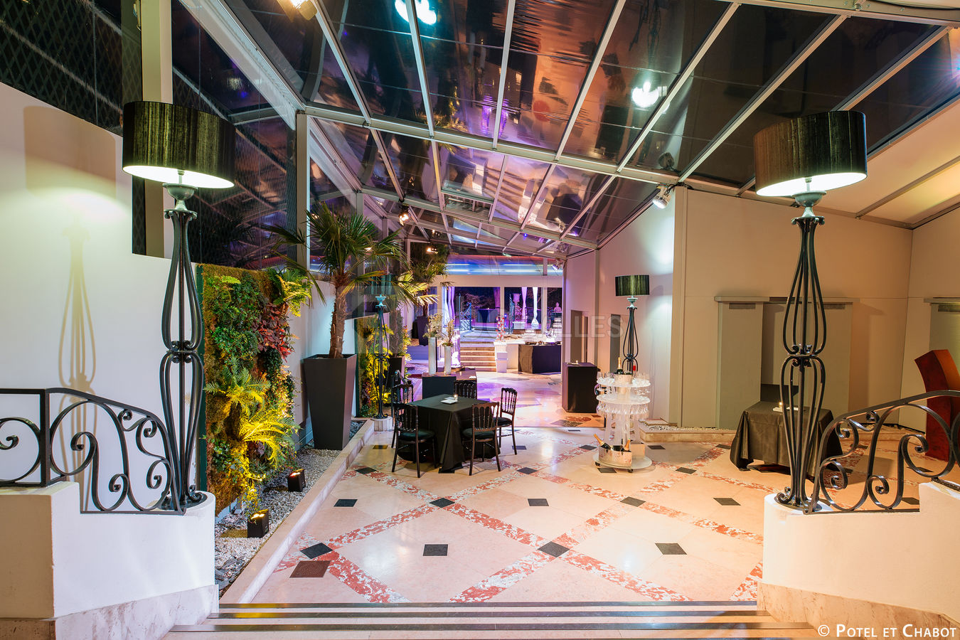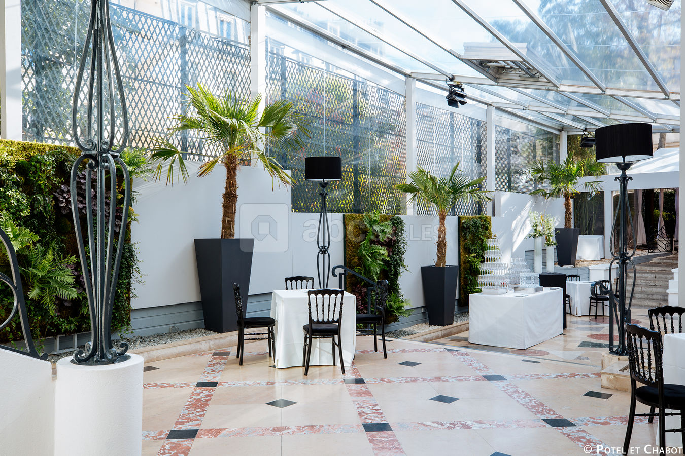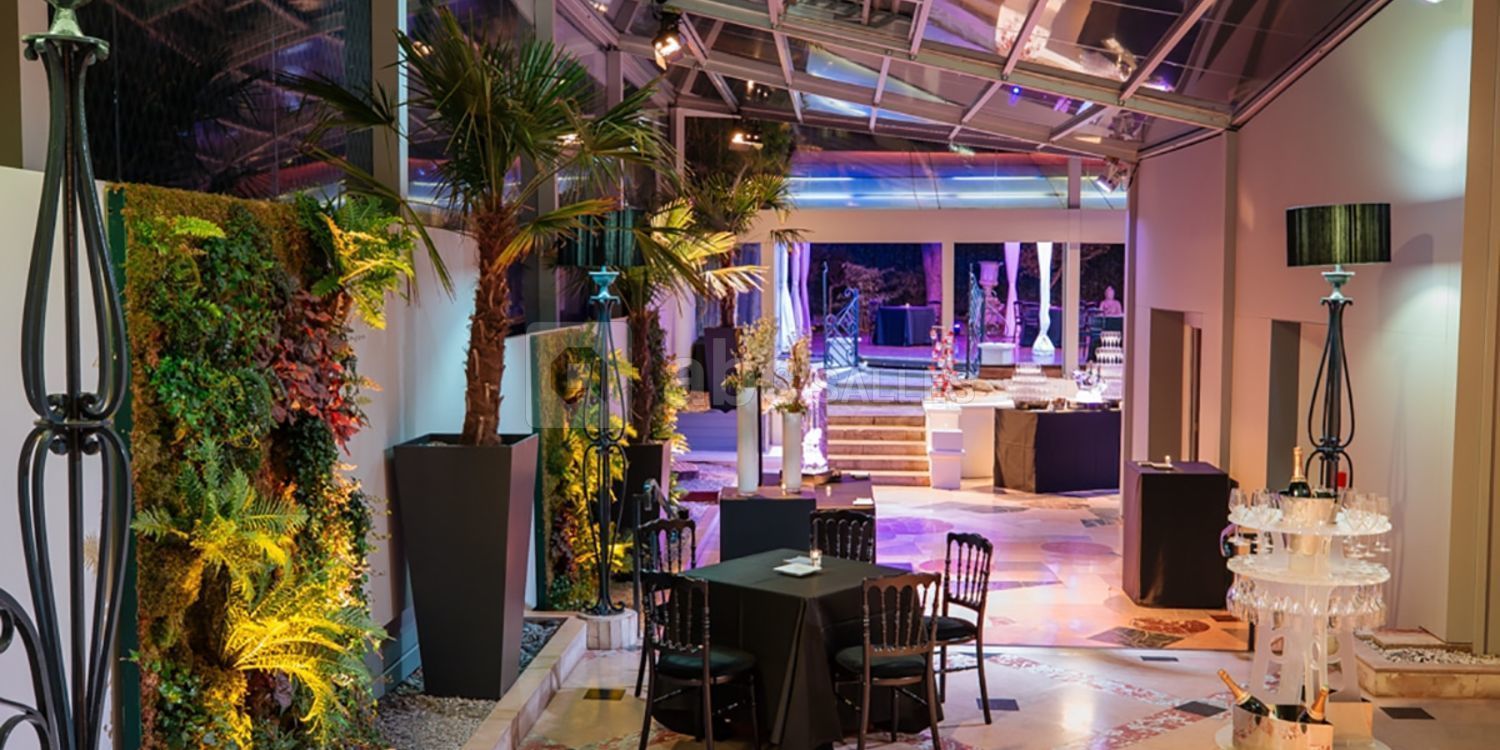 Un grand jardin de 450 m² est accessible lors de la location du salon Elysée . Il ravira vos convives lors par exemple d'un cocktail.