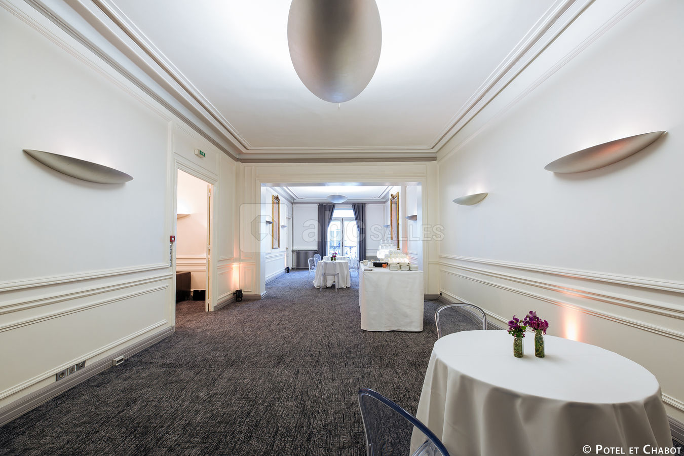 Plusieurs salons sont disponibles à la location. Décorés dans un style contemporain, vous serez plonger dans un cadre prestigieux et élégant. Les salons sont modulables et disposent de capacité diverse et variée, pour ainsi s’adapter au mieux à votre événement. Vous pourrez recevoir jusqu'à 500 convives au sein du Pavillon Kléber !