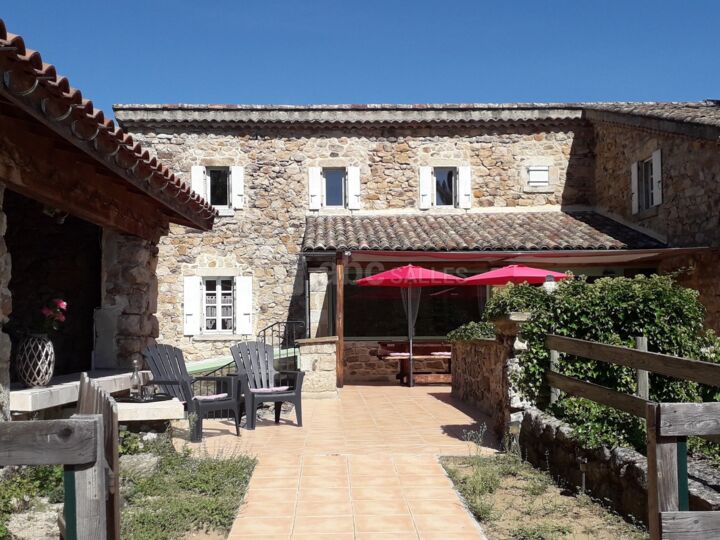 Situé à l'extérieur du village de Laurac en Vivarais, proche de Rosières, Joyeuse, Lablachère, notre grand mas de caractère ardèchois s'édifie sur 1,7 hectares, aménagé en faïsses (terrasses) dominant le plateau du Gras en direction du village de Labeaume.