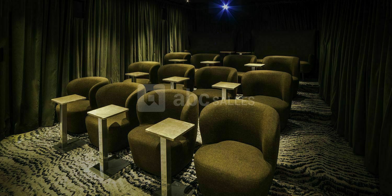 La salle de cinéma de 18 places s’inscrit dans le caractère polymorphe de tous les équipements et services proposés à l’hôtel.