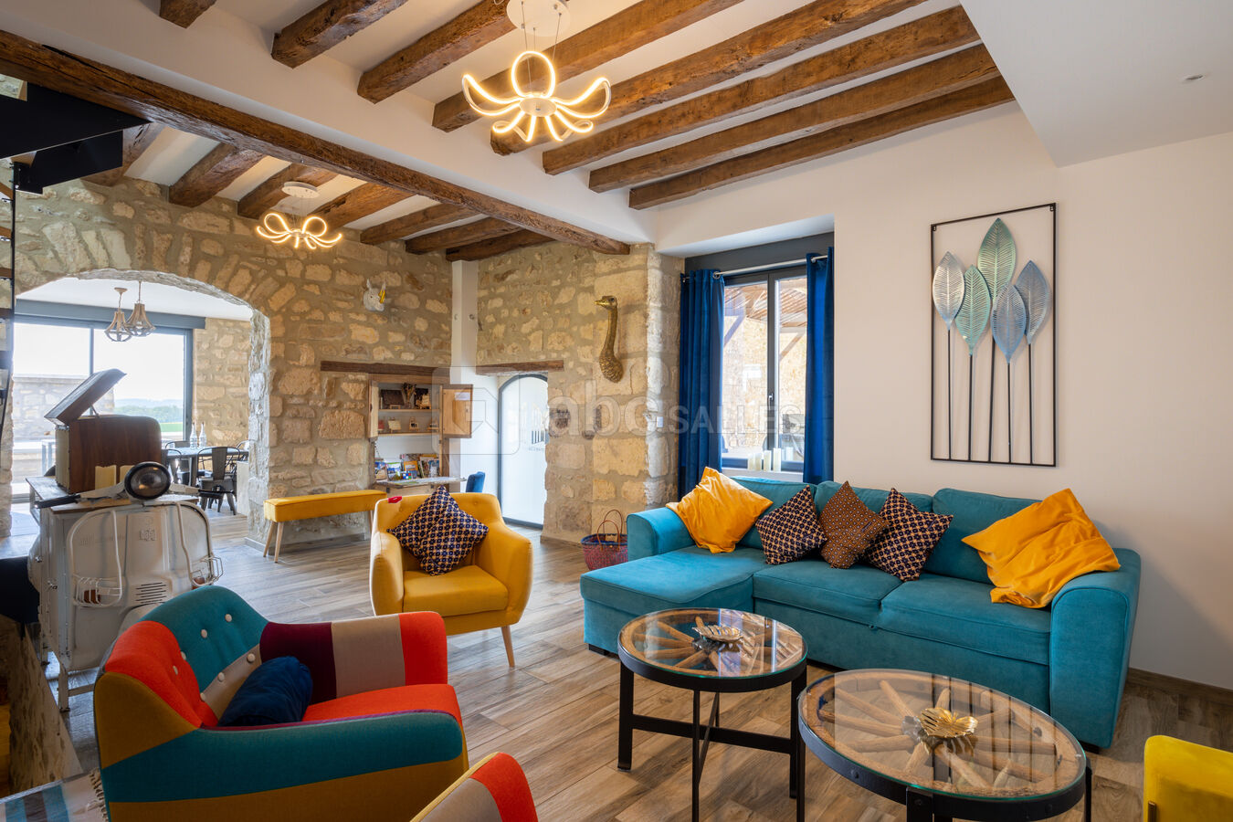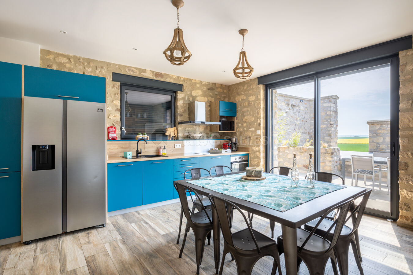 Le gîte "La demeure" vous permet de vous réunir à 9 personnes, en tribu, entre amis, entre collègues, en famille ! Nous avons particulièrement soigné les prestations afin de vous proposer une expérience inédite dans un lieu authentique, alliant veilles pierre et modernisme, au milieu de la faune et la flore environnementales. Indépendant, avec un accès par l’entrée principale du Domaine, il dispose de 4 grandes chambres, dont une suite offrant une vue imprenable sur la nature. Une cave voûtée, en accès direct depuis le salon, a été tout spécialement aménagée pour des dégustations de vins, champagne et autres verres entre amis ou en famille. Un terrasse plein sud, donnant sur les champs vous permet de prendre un bain de soleil en toute quiétude et sans l'ombre d'un voisin ! C'est un havre de paix où seuls les bruits de la nature viennent vous déranger.