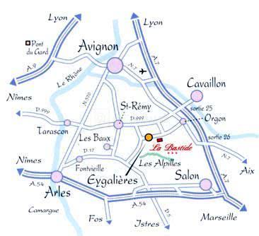 A7 sortie 25 direction Saint-Rémy de Provence, au 2eme rond-point direction"Salon", puis Eygalières. A l'entrée d'Eygalières, à gauche.