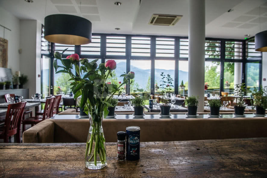 Le Restaurant la Veyrie bénéficie d'une superbe vue panoramique sur la chaîne de Belledonne et le massif de la Chartreuse. Légumes & salades de la ferme d’Eric Giraud à Montbonnot-Saint-Martin, Sorbet BIO les délices de Belledonne, Asperges de Bernin, Omble Chevalier (38), fromages coopérative d’Entremont, Gaec des chèvres du Granier.