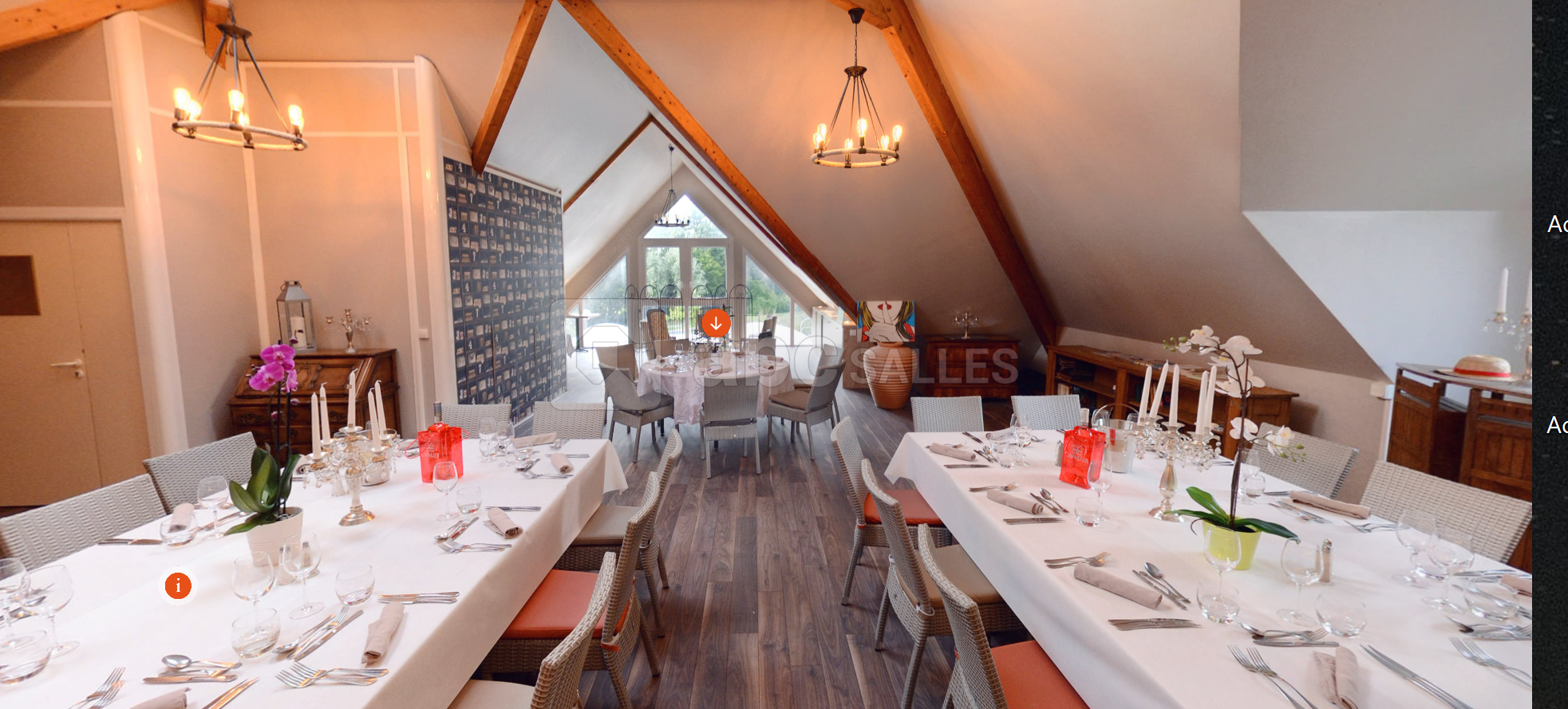 Accueil possible de 20 à 140 personnes (cocktail/buffet/repas) Promotion : Location de salle samedi et dimanche soir à partir de 800 € pour réception.