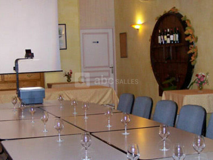 Location d'une salle de 70 m² pour vos séminaires et réunions, équipée d'un vidéoprojecteur, télé, écran et paperbord.