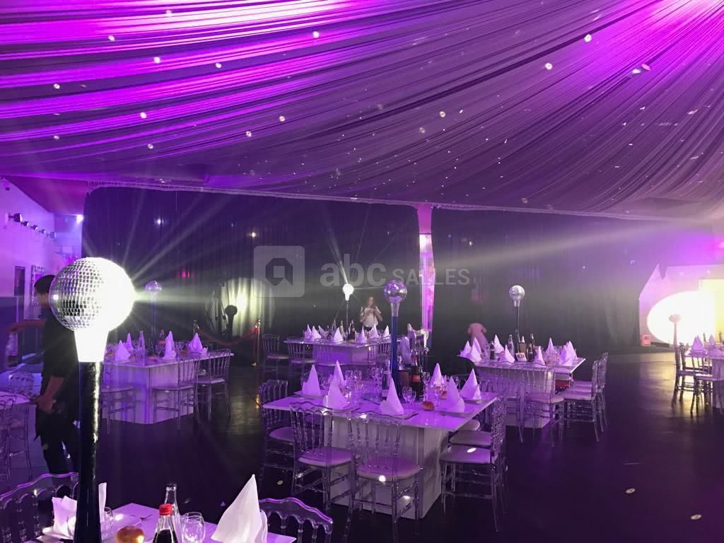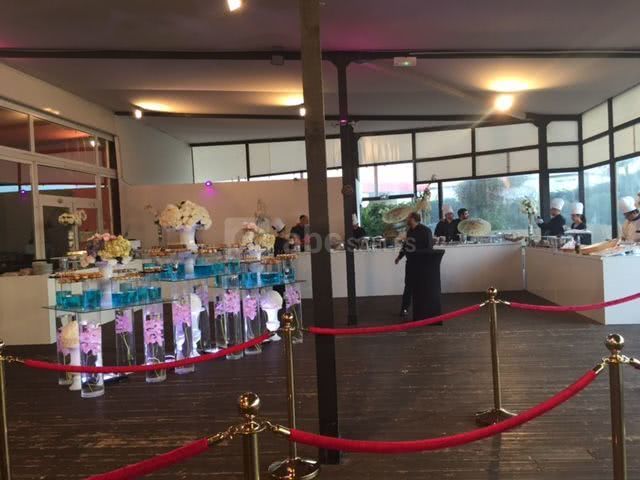 Le salon de dîner dispose d'un salon de plein pieds de 480 m² sans aucun poteaux avec une scène de 25 m² déjà installé et de superbe jeu de lumière.