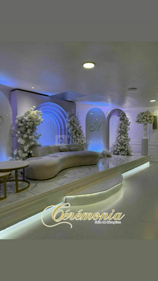 La Salle Cérémonia se distingue par son architecture contemporaine et son décor soigné, mêlant chaleur, lumière et sobriété. Grâce à un aménagement intelligent et à des équipements de pointe, chaque événement peut être entièrement personnalisé selon vos envies. La salle dispose d’un espace spacieux et modulable, capable d’accueillir un grand nombre d’invités dans des conditions idéales, tout en conservant une atmosphère conviviale et harmonieuse.
