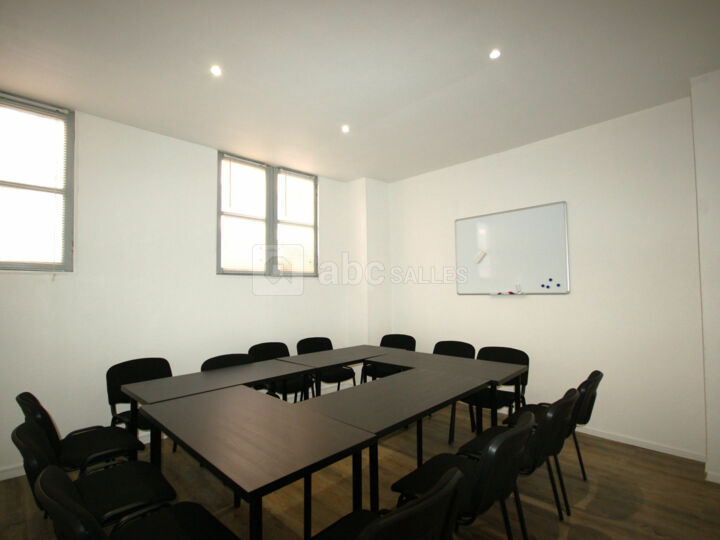 Cette salle peut s'aménager facilement en "salle de classe" ou en salle de réception. Dans ce dernier cas vous pouvez recevoir jusqu'à 20 salle dispose d'un tableau blanc pour dispenser des cours. La configuration par défaut, avec 5 tables, vous permet de recevoir 14 accédez aux parties communes pour la pause café. La salle est située au rez-de-chaussée.