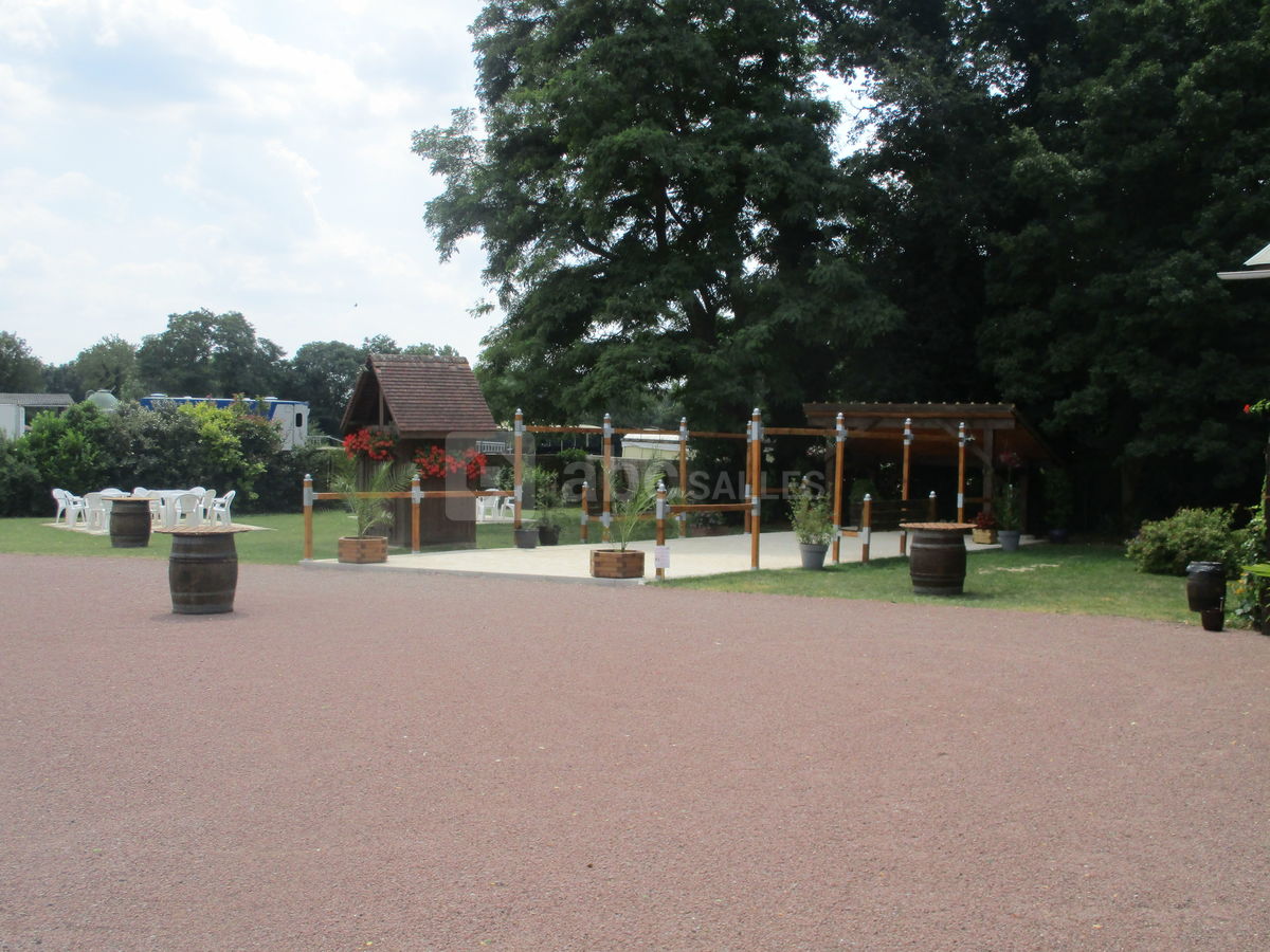 - Une grande salle de 170 m² pour le repas pouvant accueillir jusqu'à 200 personnes debout et 150 personnes assises avec poutres apparentes et espace buffet.