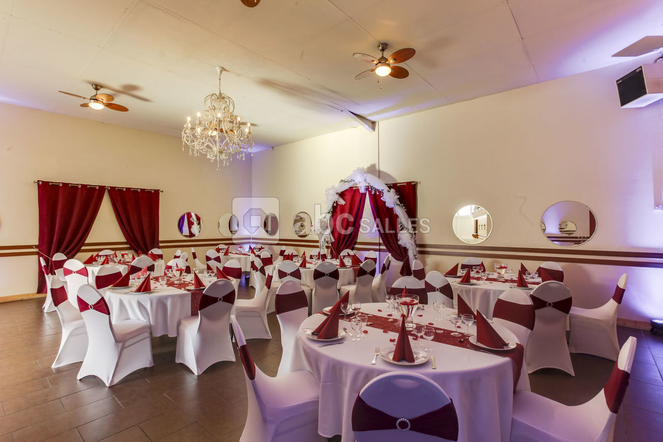 Complètement adaptable de 15 à 100 personnes en tables rondes ou 130 en tables rectangulaires, la Salle Horizon vous permettra d'organiser votre mariage chic et raffiné avec ses tentures bordeaux, son majestueux lustre blanc de 1m50 ainsi que ses grandes glaces tout autour de la salle.