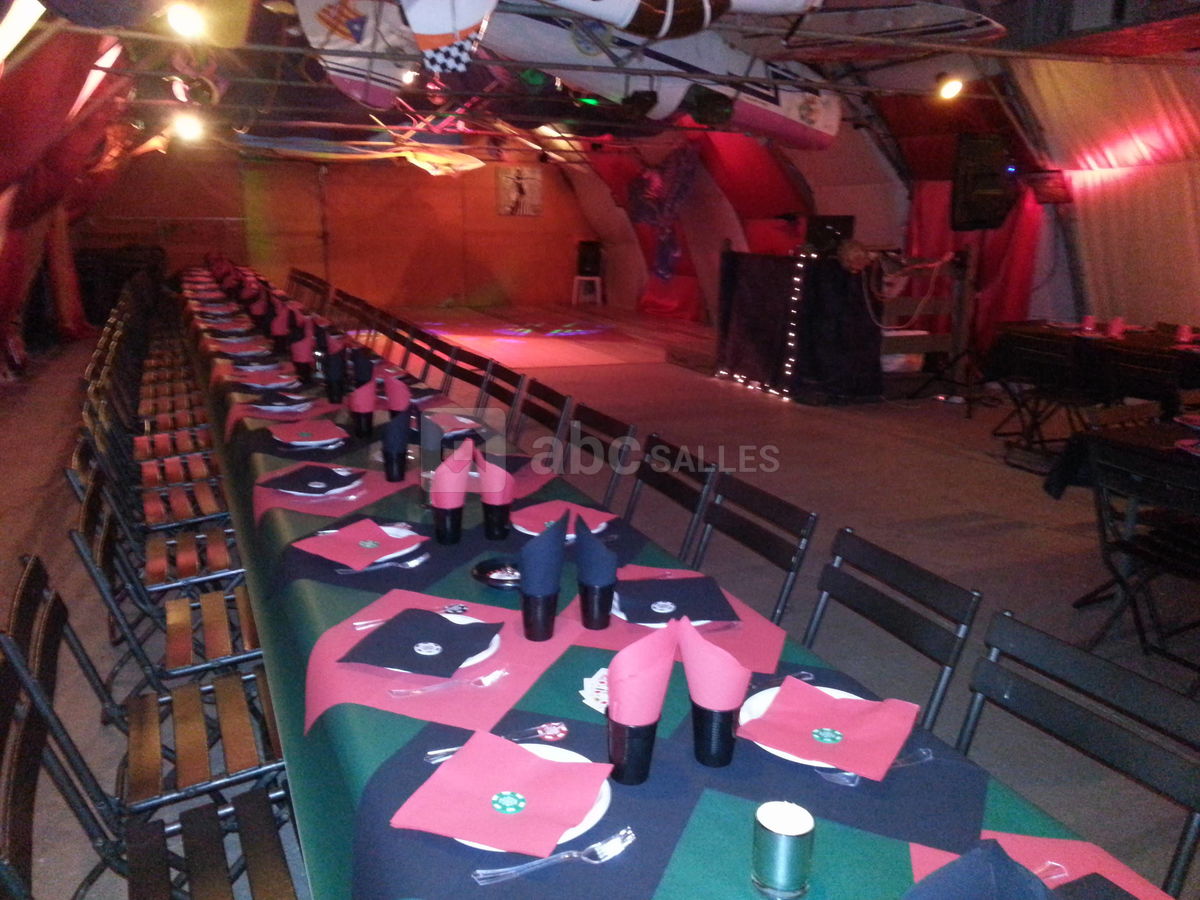 Location salle pour évenements privés D'une superficie de 120 m² elle permet d'accueillir dans un confort classique et chaleureux 80 personnes assises en interieur et 50 en extérieur grace à une tonnelle arborée. Le cadre est calme et très agréable (vue sur les Albères) sans voisinage proche avec un grand parking et dans un environnement très sécurisant pour les enfants. "Ciel et Terre Animation" propose la location simple de la salle pour vos animations privées (Anniversaires, fêtes diverses ...) accompagnée de la mise à dispositon du matériel nécessaire (Tables, Chaises, Frigos ...). Nous pouvons également vous proposer la mise à disposition (en sus) de la sonorisation et de jeux de lumières.