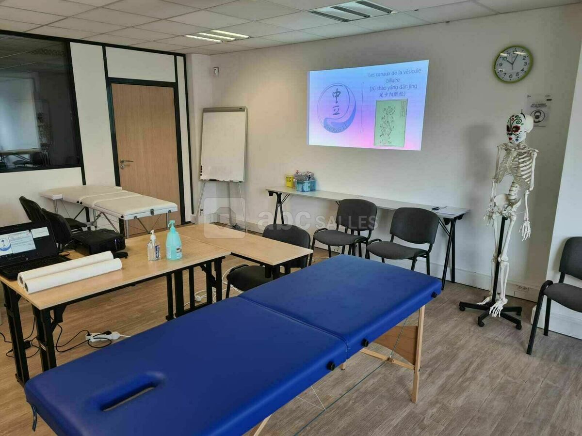 Nous vous proposons 4 salles afin de répondre à tous vos besoins. Deux salles de 60 m² pour des formations théoriques (tables de formation + chaises) et deux salles de 60 m² pour des formations pratiques (équipées avec des tables de massage + chaises) que nous mettons à votre disposition pour vos formations.