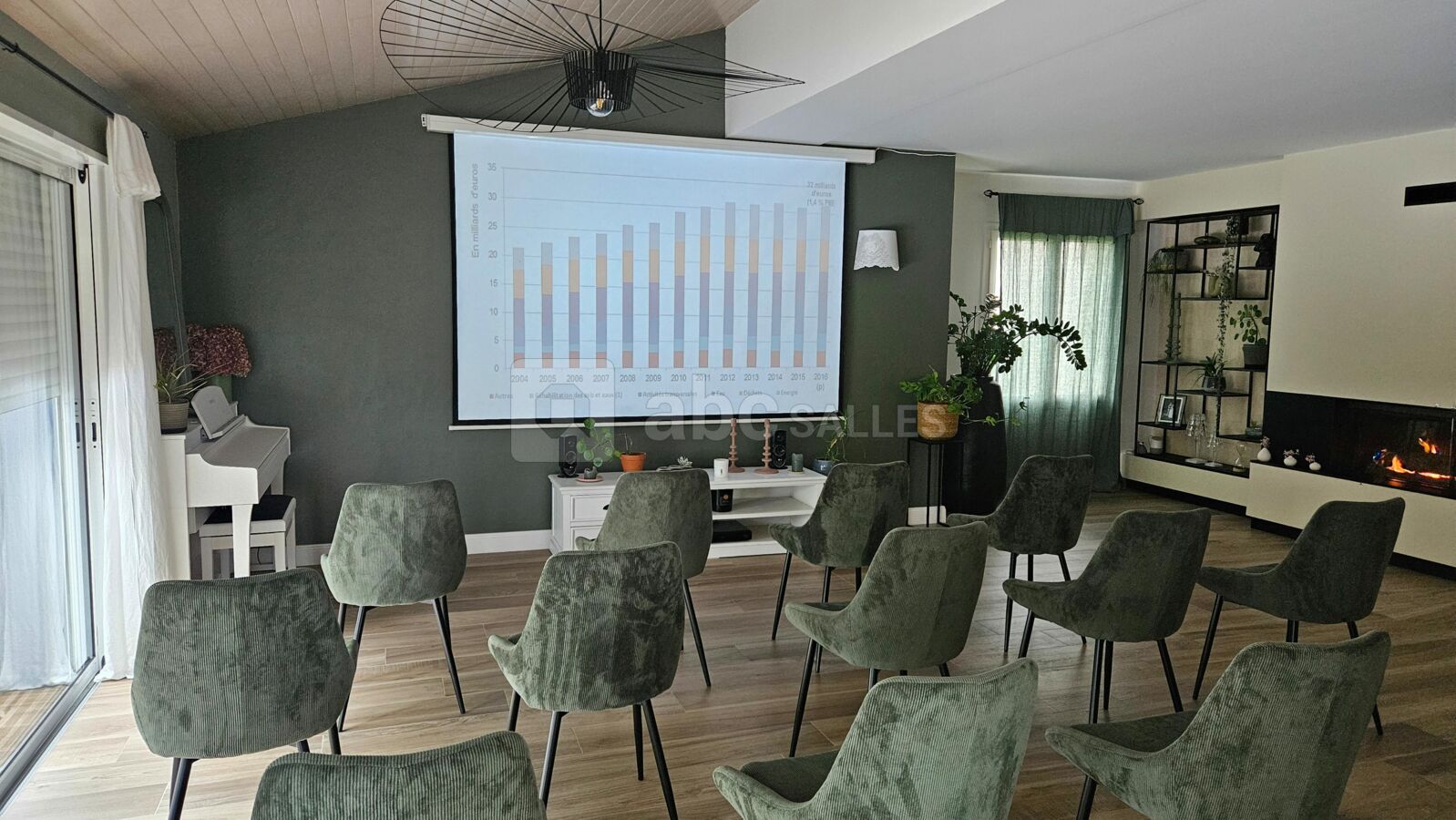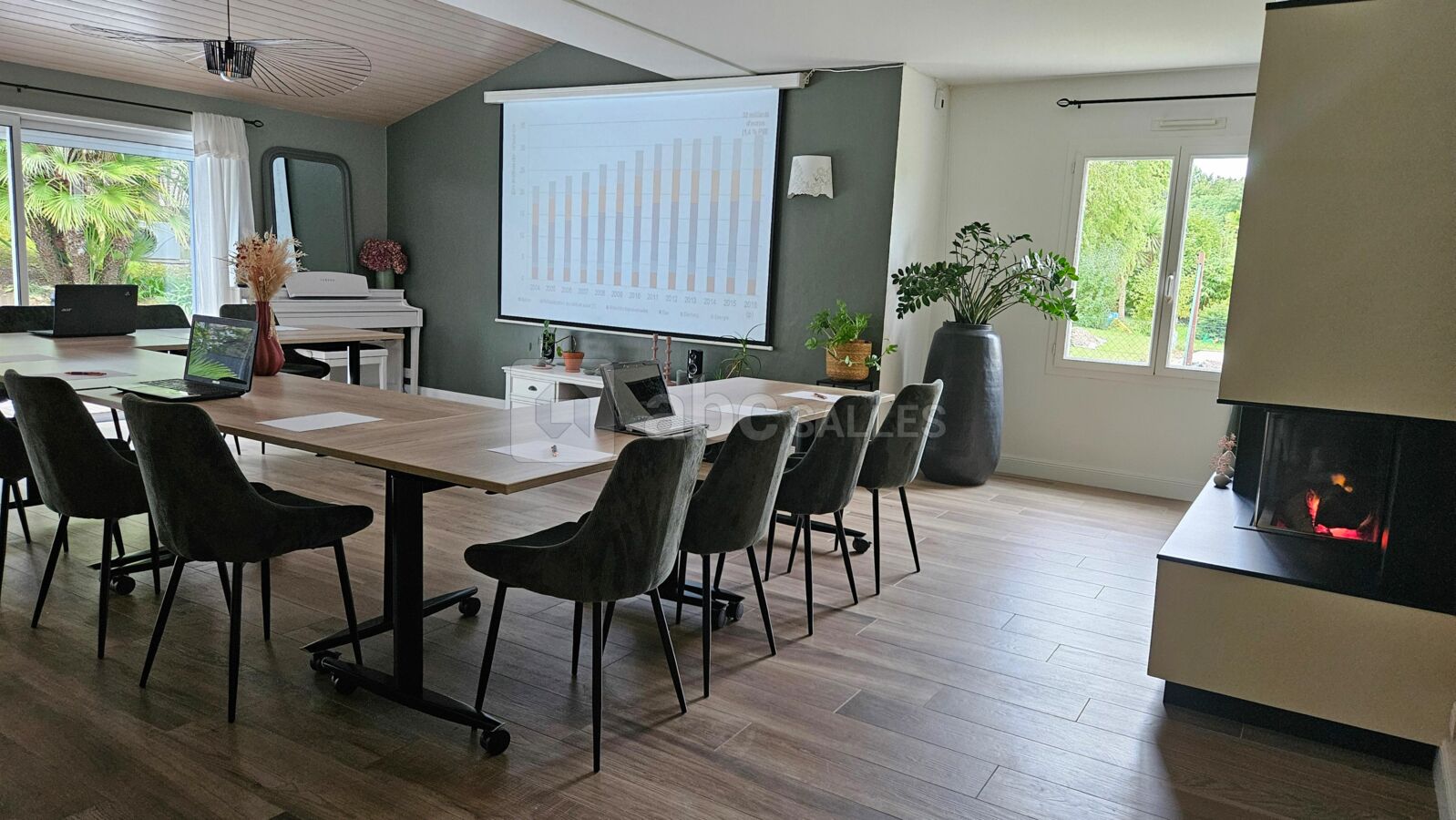 Un cadre inspirant et chaleureux La salle, dotée d'une cheminée, crée une atmosphère accueillante qui stimule la créativité. Vous pourrez également profiter d'une vue apaisante sur la piscine, ajoutant une touche de sérénité à vos sessions de travail. L’ambiance cocooning de semamaison vous permet de vous concentrer tout en vous sentant à l’aise.