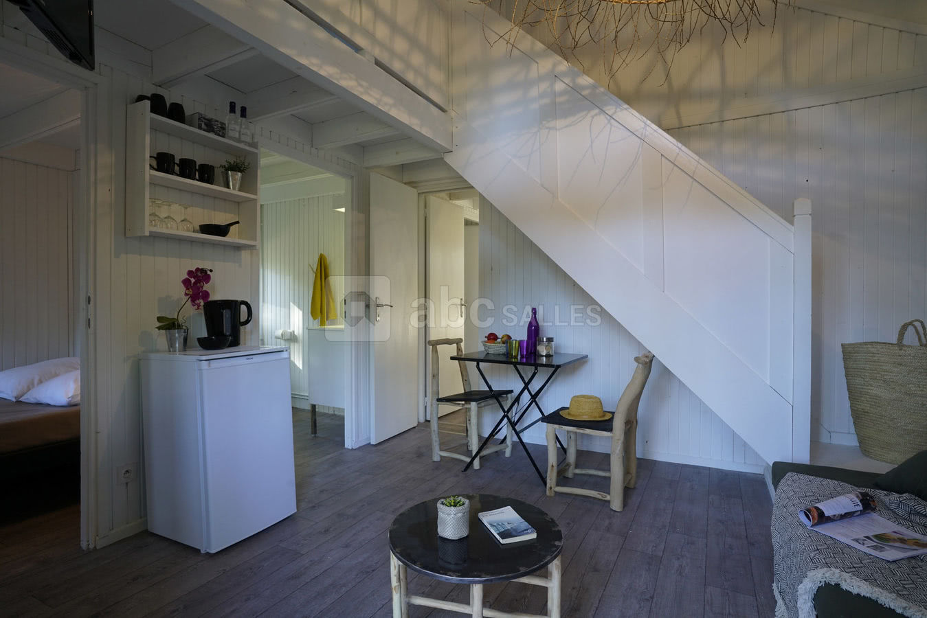 En bois naturel, les 'cabanes' et 'cottages' construites et éparpillées de part et d’autre sur les 10 hectares du parc vous accueillent pour un séjour en pleine 'cabanes' disposent de deux chambres et une salle de bain ainsi qu'une terrasse privative. Les 'cottages' disposent de trois chambres, deux salles de bain et d'une terrasse é de 25 cabanes équipées, 35 autres non équipées et de 30 mobil homes, c'est à une véritable évasion que le village vous invite. L’ambiance chaleureuse, des infrastructures simples et un service irréprochable sont nos promesses pour un séjour inoubliable.