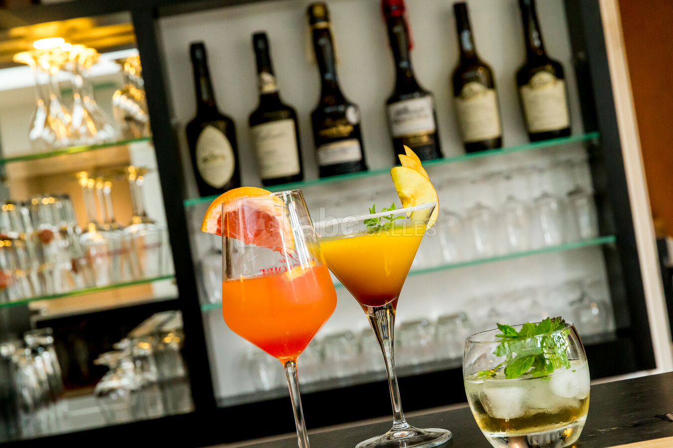 Chambres de grand confort dont 10 climatisées, décorées avec harmonie, équipées de tv lcd, satellite, Canal+, TPS, téléphone direct, minibar, salle de bains avec baignoire balnéo (23), chauffe-ser