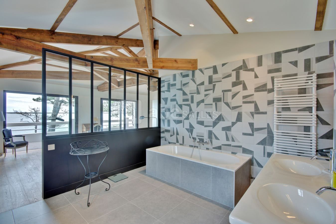 Disposant d’un jardin de 3000 m² et d’un accès direct et privatif à la plage, la Villa Moana vous offre un espace extérieur aménagé, avec une vue exceptionnelle sur la mer et le Bassin d’Arcachon.