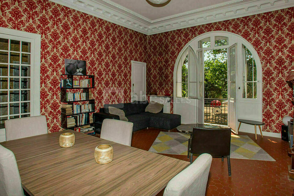 Le rez de chaussée est entièrement privatisable. Vous bénéficiez de deux salons de 50m² chacun ayant beaucoup de charme de part les moulures, les carreaux ciment, la hauteur de plafonds, les boiseries, les lustres, les miroirs etc.