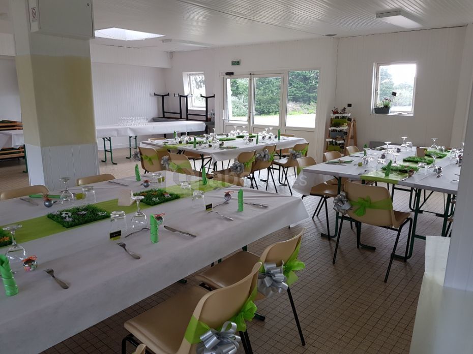Location de la grande salle du samedi matin au dimanche fin d’après midi à un prix tout à fait raisonnable (600 €). Vous pourrez également coucher tous vos invités en bungalow (4/5 pers) au prix de 90 € la nuitée.