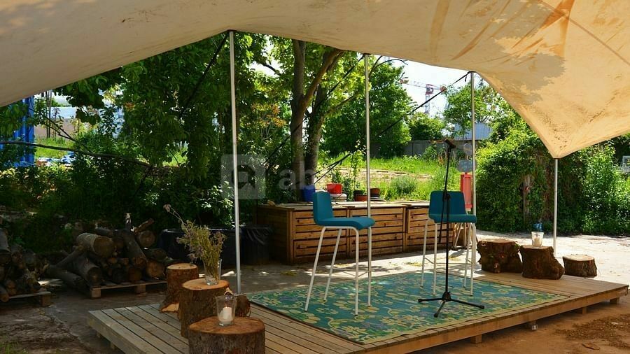 Véritable écrin de verdure avec des arbres, un atelier de bricolage, plusieurs salles, une cuisine, des grandes tentes, un banya, un panneau de basket, des barbecues et une buvette.